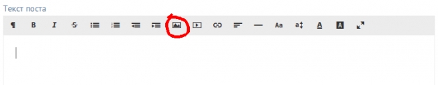 Для того, чтобы вставить картинку в текст поста используйте кнопку вставки изображения:
