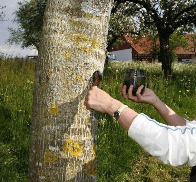 Ранней осенью с деревьев снимают и сжигают ловчие пояса вместе с забравшимися туда гусеницами яблоневой плодожорки, долгоносиками и другими садовыми вредителями. С наступлением холодов насекомые для зимней спячки зарываются в почву приствольных кругов и под кору растений, поэтому первым делом следует очистить штамбы от старой коры, мха и лишайников, замазать раны садовым варом и побелить деревья специальным раствором с добавление медного купороса.