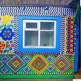 Интересные идеи для дачи часто совсем рядом с нами. Необычные поделки для дачи можно сделать из крышек от пластиковых бутылок. Простыми узорами из пластиковых крышек можно украсить не очень красивую стену дома, или выложить на крылечке такой веселый узор. Делать эти поделки для дачи можно вместе с детьми.