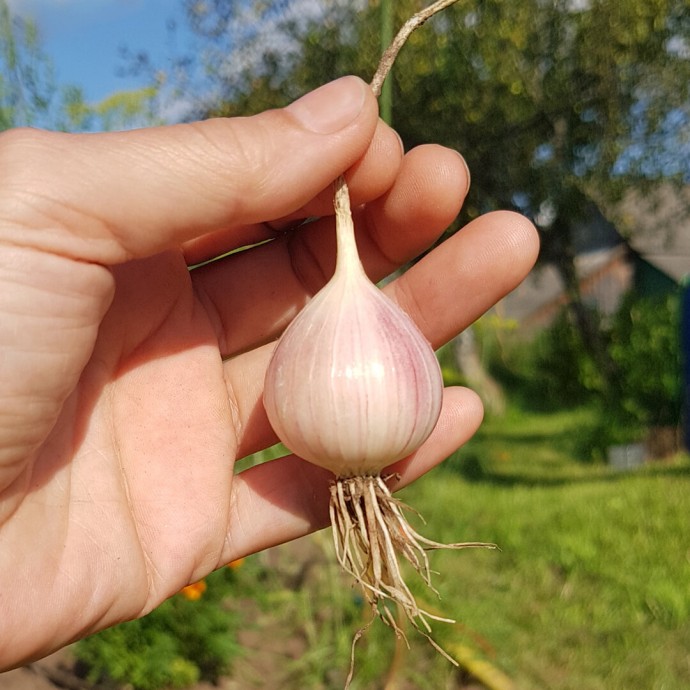 А я под зиму высаживают бульбочки покрупнее, однозубки и зубки от чеснока. Так и получается, как обычно, из бульбы и зубка - однозубки, из однозубки — головки. А чаще, как упали бульбочки где нибудь, так и растут год, второй… выкапываю головки.