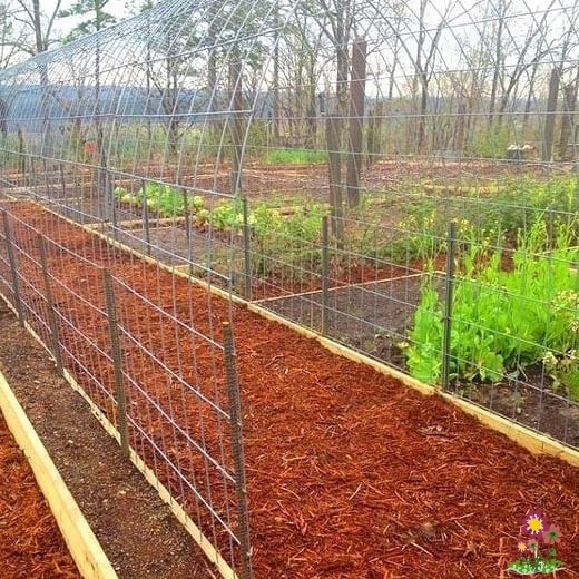 Расчищаем место, где будет стоять парник. Делаем каркас для теплицы. На него крепим сетку. В землю вбиваем прутья металлической арматуры, над земле оставляем около 70 сантиметров. К прутья прикручиваем проволокой края сетки.