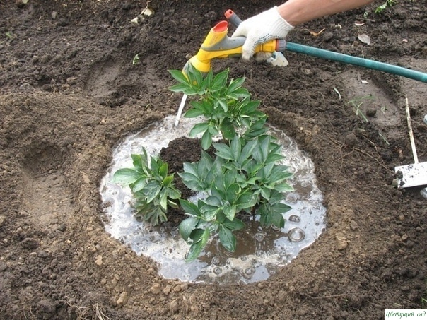 1 этап – как только появятся молодые ростки, залейте в ямку у корней раствор аммиачной селитры (15 г. на 10 л. воды).