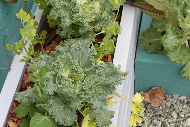 Все располагается на веранде или мощении в высоких многоярусных грядах, растет совершенно невероятный микс из овощей, пряных трав и цветов! Это же здорово!