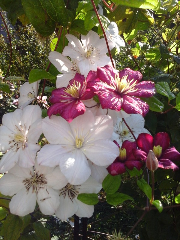 Клематисы сплелись в букет