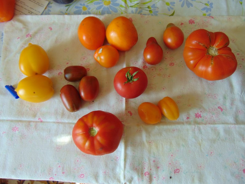 Кустик томатов Золотой дождь, на котором тоже был приличный урожай, тоже уже показывала