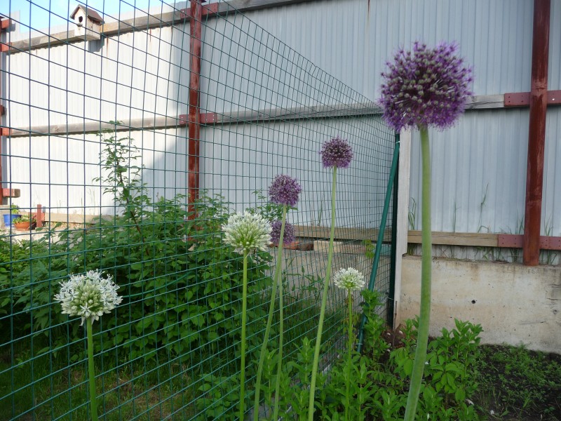 А у меня — нет, у крупных фиолетовых шаров листья тонкие и длинные. Этих луков так много всяких, я в прошлом году видела на рынке сухие шары диаметром сантиметров тридцать, не стала покупать, потому что не смогла выяснить у продавца, какие они — как растут, держатся ли сами или их надо подвязывать к опоре, показалось странным, что продавец не в курсе, но любопытство осталось.