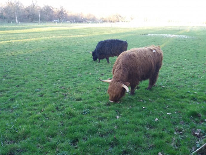 Первое, что попадается на глаза - шотландские быки, которых можно видеть на всех туристических открытках - еще одна гордость шотландцев. Они, как и лисы, белки и лебеди находятся под охраной государства. Для них отведены большие площади для выгона во всех парках. Несмотря на их внушительные размеры, (они раза в 1,5 больше обычных коров) - эти бычки очень миролюбивы и, практически, ручные; некоторые туристы кормят их из рук.