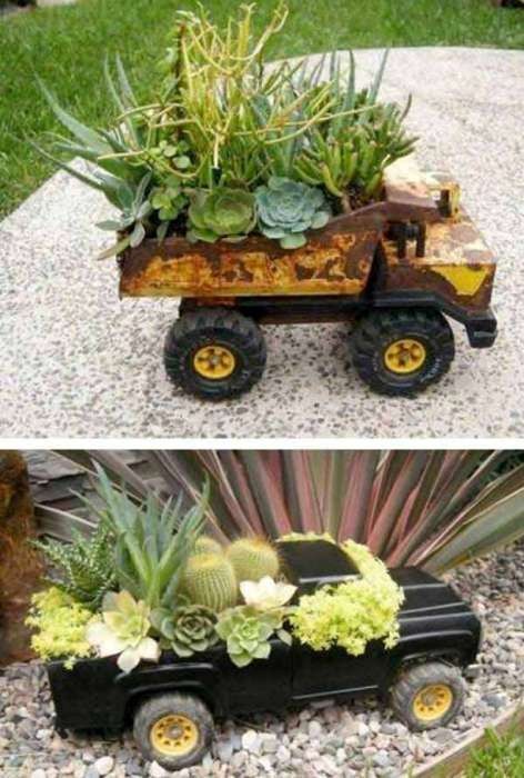 Да куча идей! Машины подкрасить, необязательно даже колеса крепить\чинить, можно задрапировать низ низкорастущими или присыпать любой мульчой. Клумба по весу должна небольшой получиться, пусть не передвижная, а переносная.