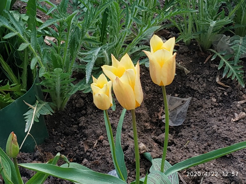 Вышла и ахнула! Расцвели тюльпаны пронзительно-весенние, золотистого цвета ! Надо было сначала прополоть от сорняков, а потом уж фотографировать, но уж как есть показываю.
