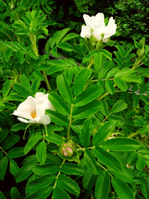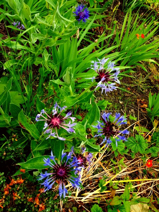 Все еще пышно цветут огромные спиреи, рододэндроны, боярышник, азалии, ирисы. Отцветают крупные васильки. На заднем дворе распустилась моя первая роза, которую "руки не дошли " обрезать ни осенью ни весной. Каково же было мое удивление увидеть бутоны несколько дней назад и сегодня распустились первые розочки