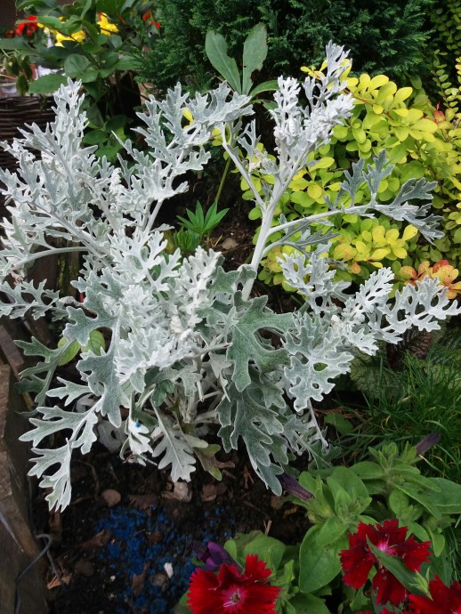 |Цинерария серебристая, пережившая зиму под укрытием. Начеренковала от одного куста несколько и ей, похоже, у меня нравится.