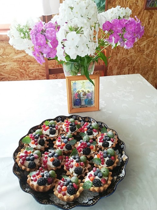 Красота и вкусно а! Мои любимые пирожные — корзиночки и эклеры. Только давно их не пекла. В нашей семейной традиции, пока вс мужем в городе жили, Наполеон, Муравейник и Сливочная колбаска. А теперь Сметаня, так мы называем в шутку сметанник, потому что невестка Таня печёт. И Наполеон конечно.)