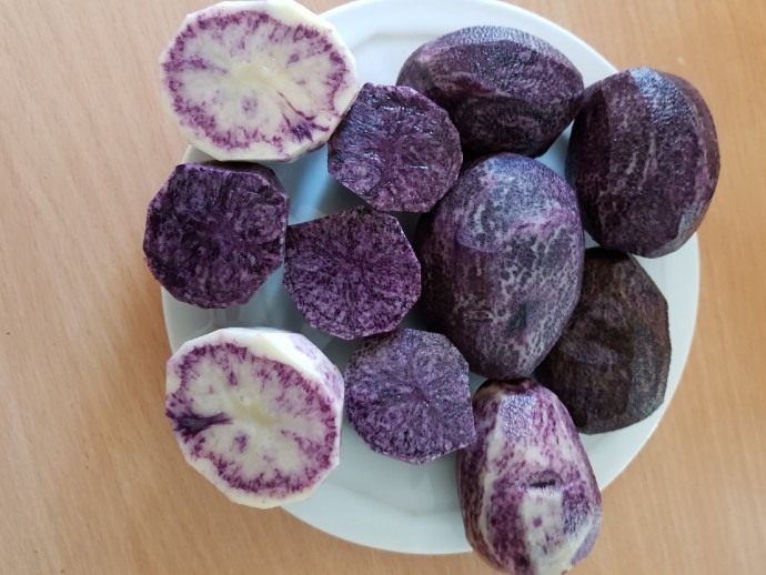 Мои родители когда-то давно выращивали картошку с фиолетовой кожурой, но мякоть была желтоватая. Сорт в народе называли Цыганка, настоящее никто не знал. Очень вкусная была картошечка