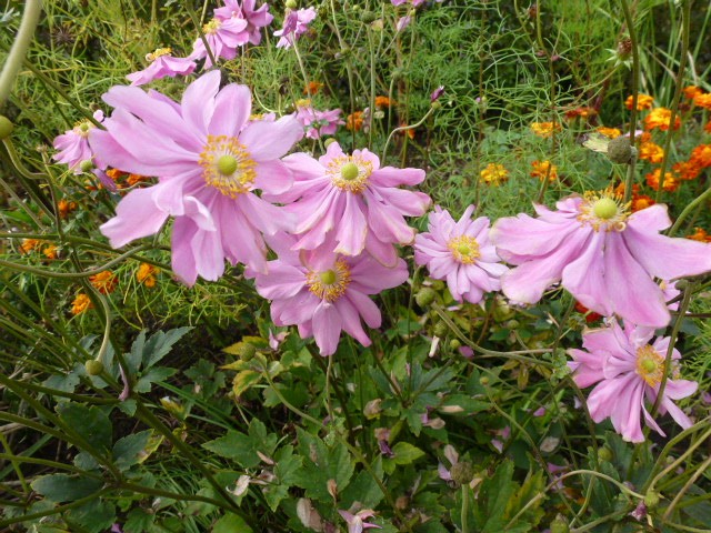 Хрупкие цветоносы с трепетными лепестками возвышаются на высоту от 50 см до 1,5 м. Цветовая гамма нежных бутонов - белый, кремовый, все оттенки розового и фуксиево-пурпурного - смотрится осенью особенно свежо, создавая романтический настрой в унылом осеннем саду. Размещают их чаще там, где не хватает красивых деталей осенью, в укромных и затененных уголках, которые хотелось бы "подсветить".