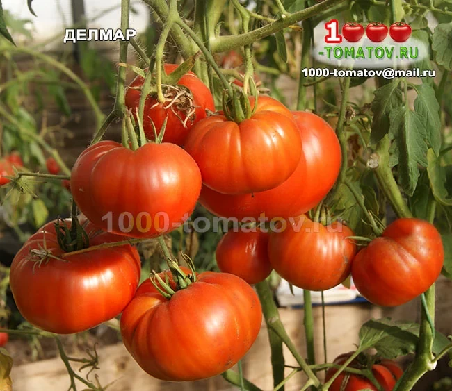 Томат Делмар DelMar фото 5Томат Делишес Гигант — Giant Delicious – Вкусный ГигантИндет, около 1,6 м, среднеспелый. Растение крепкое, формируется в 1-2 стебля.Плоды красные, плоскоокруглые, при нормировании массой до 800 г, мясистые, сочные, очень вкусные гигантские плоды.Плодоношение длительное. Отличается повышенной устойчивостью к грибным заболеваниям и вкуснейшими крупными плодами!