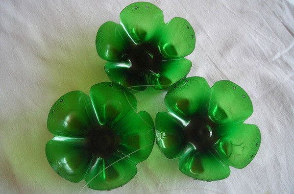 Остались бутылочки из-под пива, сделала клумбу на дачном столе.