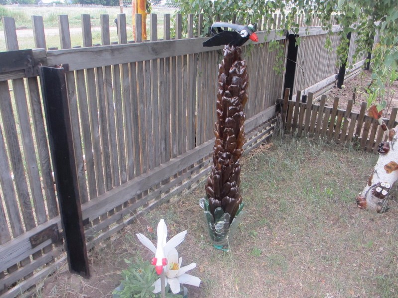 Вот шишки из разных бутылок, стоят много лет, не ломаются. Внутри деревянный кол, можно метал. трубку. Птички от средств бытовой химии.