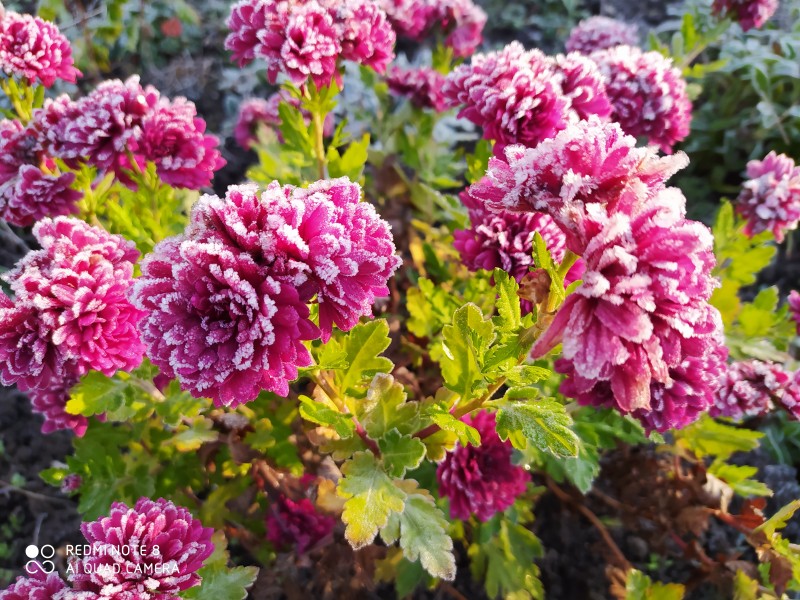 У меня растут хризантемы: розовые, белые, жёлтые. Они бывают практически всех цветов: игольчатые, перистые, трубчатые. Порой смотришь снег уже выпал, а цветы ещё цветут пышными кустами до самых морозов. Помню бабушка выращивала огромные белые и жёлтые хризантемы. До чего же они красивые были! Словами не передать!