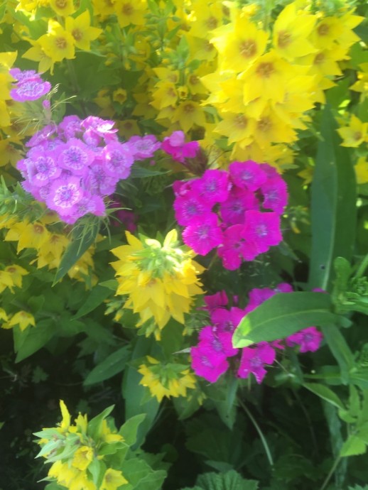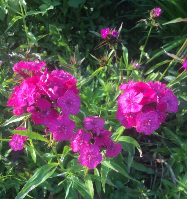 Особенно я люблю, когда гвоздика окружена другими такими же простыми, но яркими соседями. Посмотрите, как гармонично смотрится союз вербейника и турецкой гвоздики.