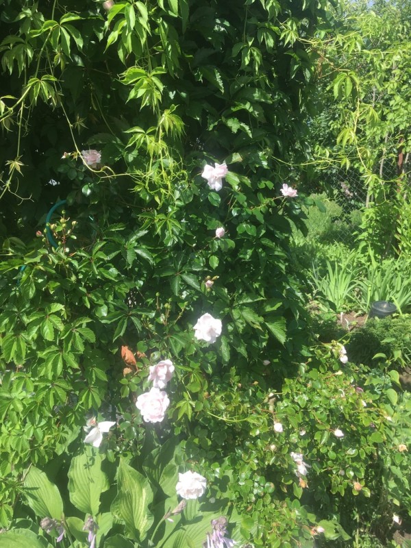 Абсолютно не согласна! Без контроля и ухода ни одно растение не обходится. У меня девичий виноград прекрасно несколько лет соседствует с плетистыми розами, ничего, на мой взгляд очень декоративный союз.