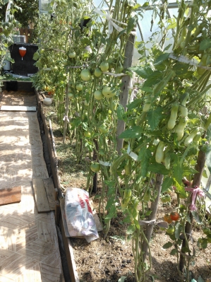Но насажала густо-рассады было много… Жалко. Получилось, что справа в парнике 3 ряда помидор в ширину, в длину-14 калев, итого-42! это много.