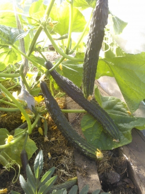 Длина огурцов по 40 см. Дети «отъели » хвост в одном, пока я сфотала))) На кусте одновременно до 10 штук!