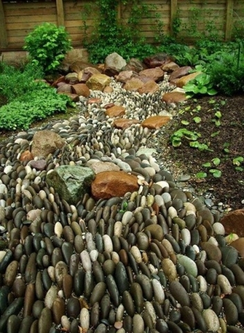 При помощи его можно одновременно отвести дождевую воду, стекающую с крыш и с клумб, украсить дворик, оригинально разделить территорию, реализовать творческие возможности, устроить мини-пейзажик, водрузить изящный мостик — да мало ли что ещё?