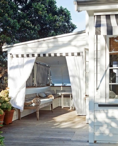 Как-то отдыхали в Крыму в частном пансионате прямо на берегу моря, выход — во двор, но большая терраса — на пляж. Нельзя сказать, что точно так же, но и стиль очень похож, и материалы, и общее настроение беззаботности, счастья и полноты бытия. Мне кажется, многое от нас самих зависит, я не говорю о том, чтобы создавать дома такое же, но некоторые акценты в саду, ухоженность, простор или его иллюзия, сильные растения с белыми, голубыми цветами, с роскошной листвой, кампсис опять же — вот и впечатление, что ты на курорте, хотя и дома.