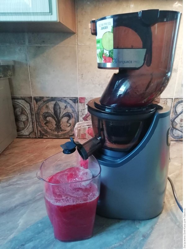 Томатный сок выжимаем с помощью шнековой соковыжималки. Затем нагреваем до кипения и добавляем на 1 л сока: Сахар — 1 ст. ложка Соль — 1/2-2/3 ст. ложки Вы можете приготовить сок своим способом или использовать готовый.