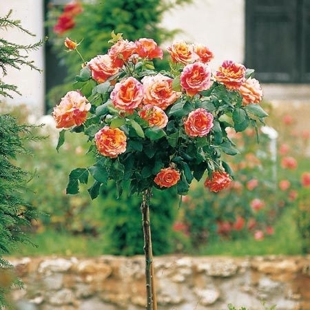 В регулярном французском саду штамбовые розы подчеркнут аристократичность, их сажают в центр самшитовых композиций. В садах более свободных стилей - размещают вдоль садовых дорожек (в грунте) или прямо перед входом в дом (в горшках), на террасе или ступеньках.