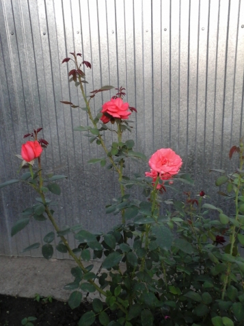 Две бордюрные — Сенсация (темно-бордовая) и Виноград (малиновая). Из плетистых пока только две — наш неизменный Фламментанц и Дороти Перкинс.