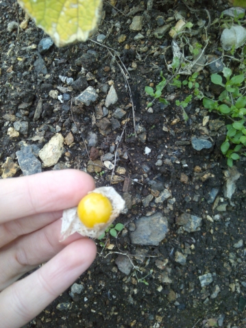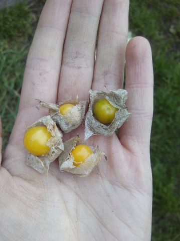 Собрала первый урожай за день до снегов. Попробовала. Вкус... эм... очень специфический. Как будто кислый мини помидор съела. Хотя, думаю, варенье из него было бы вкусное. А вот дочке нашей, большой любительнице помидоров и любых ягод, даже облепихи, очень даже ягодки понравились. Надеюсь в следующем году самосевом физалис вновь взойдет.