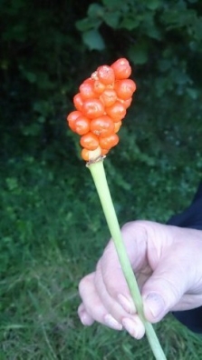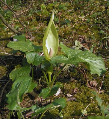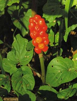 Цветок состоит из початка и покрывала, однако, невзрачное светло-зеленое покрывало часто лишь слегка приоткрывается и практически полностью скрывает початок, где на мясистой, хорошо развитой главной оси располагаются мелкие цветы желтовато-белой окраски, также не представляющие никакой декоративной ценности. Если произойдет опыление, то на початке созревают красные или оранжевые ядовитые ягоды.