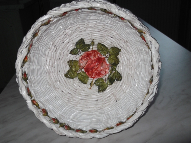 Продолжаю плести из бумажной лозы , украшаю дом вазой для фруктов .