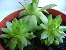 От взрослого растения отрезают листок, немного подсушивают (8-10 часов) и высаживают в песочный субстрат или легкую почву. Листок должен укорениться в течение недели. А вновь образованное растение зацветет через 2-4 года. Но не все виды достаточно легко можно размножить таким образом. Самый надежный вариант размножения - с помощью дочерних верхушечных розеток. Для этого розетку срезают и так же оставляют подсохнуть. Срезы советуется обработать древесным углем. Затем розетка высаживается в почву, где должна легко укорениться. Молодое растение, размноженное таким образом, может зацвести уже в первый год.