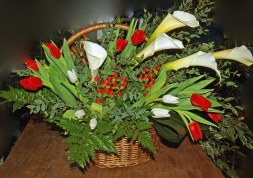 Тоже обычные комнатные аспарагусы - и вкрапления цветов (смотреться будут любые, по-моему).