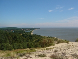 вдоль береговой линии идет почти стокилометровый заградительный вал, а в Балтийское море устремляются старинные, собранные из бревен и камней, волнорезы.