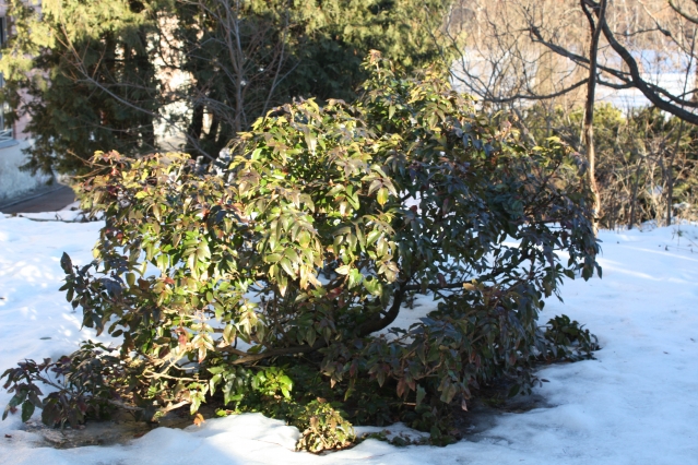 Ведь у нас зимы долгие и нудные, а тут в саду стоит крепыш - блестит листьями! Да ещё поигрывает переливами окраски листьев! Заглядение!