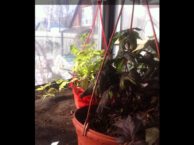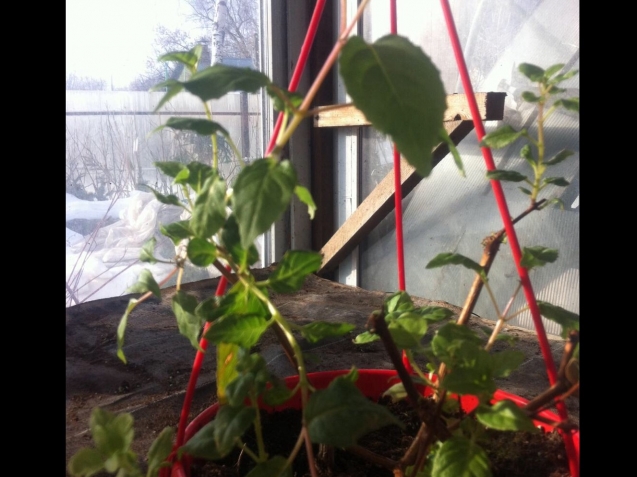 чего- то не навещала я её давно. Поливали без меня. А сегодня захожу - трава пошла, тунбергии, фуксии. Тоже на солнце реагируют. Ну вот и всё, зиме конец, раз трава пошла в рост.