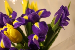 Безумно красивый букет из жёлтых тюльпанов и ирисов! Тюльпанов 9 штук, ирисов 5, как же они хороши вместе! Не налюбуюсь! Счастье в том, что подарили их сегодня, есть ещё время ирисам поцвести, так как они только открылись!