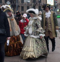 Вот так, просто и без всякого смущения - царские особы бродят по улицам Питербурга. Ну а где ж ещё им бродить, в самом деле... Красивые костюмы, очень хорошо играют при фото актёры - позы и стать - всё как надо!