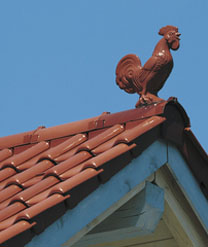 Если сам конек несет практическое назначение, то украшение для крыши может привнести нотку изысканной привлекательности и благородной роскоши. Основным местом расположения украшений был и остается конек. Очень редко в наше время можно встретить «коньковый гребень». Он устанавливался на двускатных крышах и представлял собой довольно массивное украшение конька, своеобразную корону, которая издалека привлекала внимание к зданию.