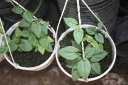 А это мои кашпо с тунбергией. Выращена из семян, рассажена по два в кашпо. До цветов недалеко!