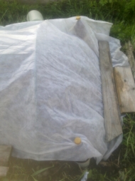 Может, кто-то уже давно пользуется таким способом, но я поделюсь - думаю, кому-нибудь пригодится. Чтобы прочно закрепить укрытие на грядке, нужно вкопать бутылки по краю, накрыть грядку спанбондом и закрутить крышки на бутылке, зажимая ей спанбонд.