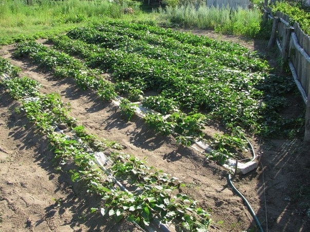 Через 10 дней - вторая подкормка: на 10 л воды - 0,5 л кашицеобразного коровяка и 2 ст. ложки нитроаммофоски. На 1 м2 - 5-6 л.
