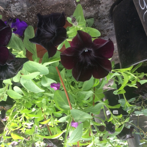 Зацвели петуньи почти чёрного цвета! Насыщенный бордовый, смотриться как чёрный! Самое главное - цветок огромный- см 8! И блики как на бархате! Глаз не отвести!