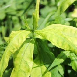Хлороз (пожелтение листа с остающимися зелеными прожилками) на молодых листьях вызван недостатком железа, хлороз на старых нижних листьях недостатком магния.