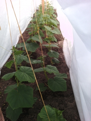 На ладони у Вас клоп хищник, он уничтожает вредителе и их личинки. Белые крапины — остатки крепления яиц белокрылки, они тверденькие. Если листья огурцов в жаркое время опускают листья, это не означает, что им не хватает воды, это защитная реакция растения на испарение влаги в поверхности листа. Душиком поливать их не нужно, только под корень в вечерние часы, литра по 2 под корень каждый день, когда жарко. Правильно огурцы сажать в широкую лунку, и так как у огурца корневая система расползается не в глубину, а ширину (т.е. поверхностная), полив в такую лунку дает хороший эффект от полива. И хорошо бы знать, где выращиваете огурцы — в открытом грунте, теплице или под временным укрытием.А это мои огурчики, хоть еще и маленькие. но хорошо цветут.
