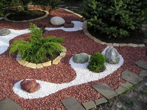 Великолепно смотрится гравийный сад, украшенный хвойными растениями. Следует лишь позаботиться об их компактности. Из хвойных пород рекомендуем вам остановить свой выбор на можжевельнике виргинском, казацком, горизонтальном, обыкновенном; пихте бальзамической, корейской, субальпийской; карликовых сортах сосны горной; ели канадской «Коника»; кедровом стланике.