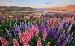 Синие, фиолетовые, оранжевые, желтые, розовые, белые или даже двухцветные – на берегу озера Текапо можно наблюдать настоящее буйство красок.